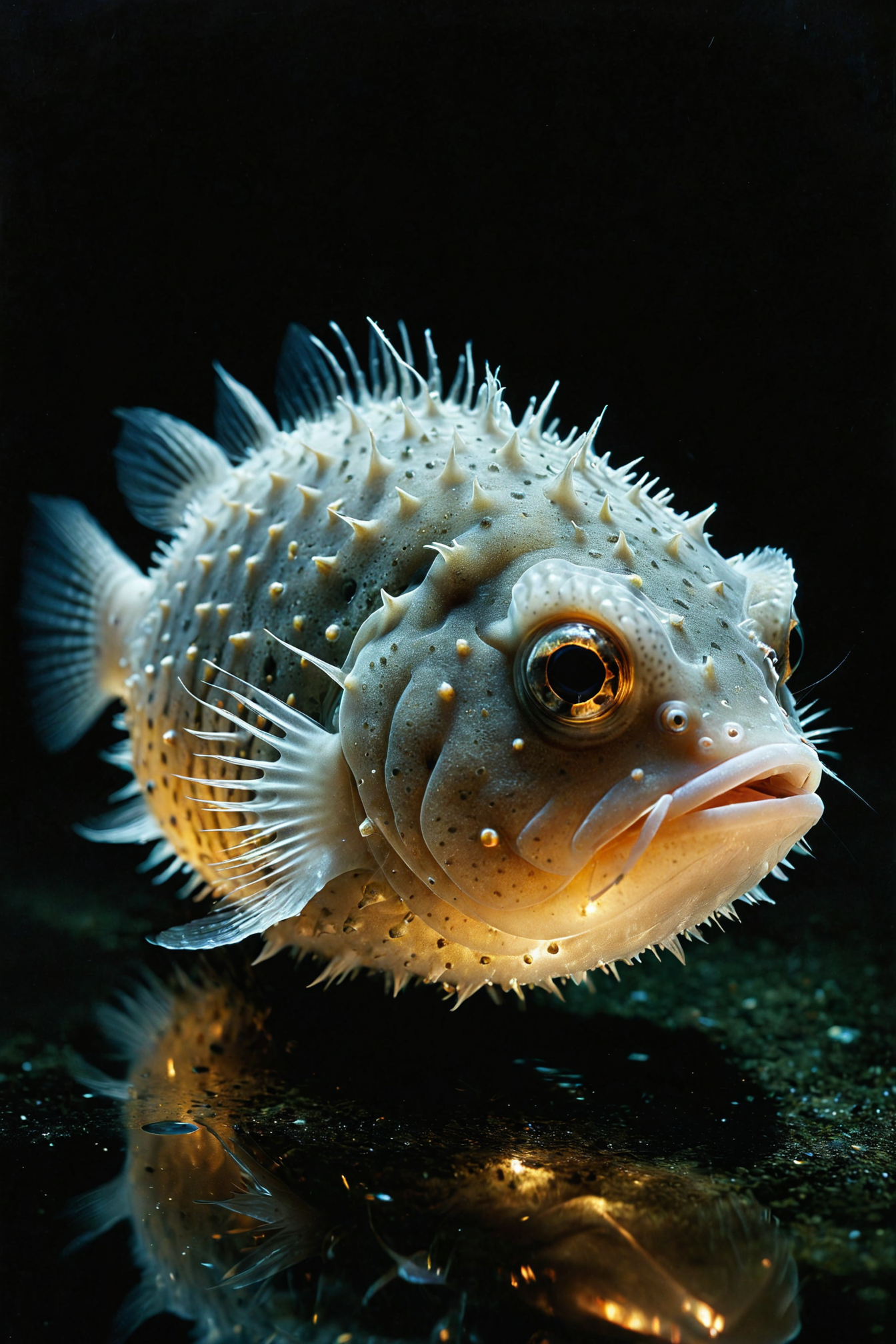 (Light Trails Photography by Walker Evans and Nickolas Muray:1.2), award winning, pufferfish, (aesthetic of conceptual art with quixotic atmosphere:0.5), glare effects, evenly focused, visionary brilliant tour de force with skillful details, (natural and dull colors:0.1), <lora:MJ52:0.5>
