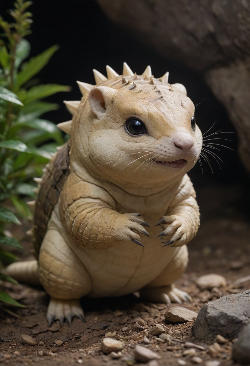 closeup award winning photo of Sandshrew\(pokemon\), perfect environment, extremely detailed, dark shot