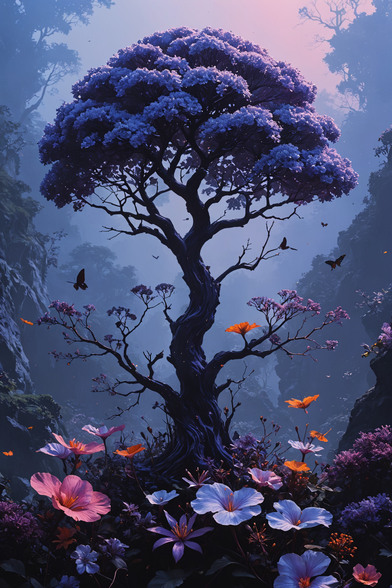 (digital art by Tavar Zawacki and John Copnall:1.2), aesthetic of bio art, iconoclastic masterful creation, well-executed details, exclusive atmosphere, (dark purple and periwinkle colors:0.1), (center composition:0.1), <lora:add-detail-xl:1> <lora:MJ52:0.5>