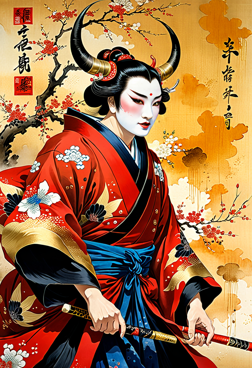 ((masterpiece)),best quality,((illustration)),original,extremely detailed wallpaper,(((beijing opera))),(sketch),((wash painting)),((ink splashing)),((((dyeing)))),((Chinese painting)),((beijing opera))),(sketch),(wash painting),(ink splashing),dyeing,((Chinese painting)),((a mythical ferocious animal)),{{The bull}},{{ long horns}},{{With wings on its back}},(Red and black wings),(solo),mountain,Big and strong,Diabolical,Tyrannical,{{{Ukiyo-e_style}}},{{flat_style}},{simple_colors},{{{masterpiece}}},{katsushika_hokusai},{chinoiserie},{{{best_quality}}},kimono,{{ultra-detailed}},{illustration},{{an_extremely_delicate_and_beautiful}},{Gorgeous and rich graphics},<lora:add-detail-xl:1.5>,<lora:xl_more_art-full_v1:0.3>,