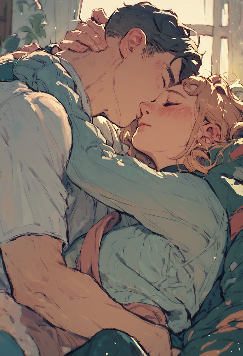 score_9, score_8_up, score_7_up, 1 girl, 1 guy, loving embrace, cuddling, clothed