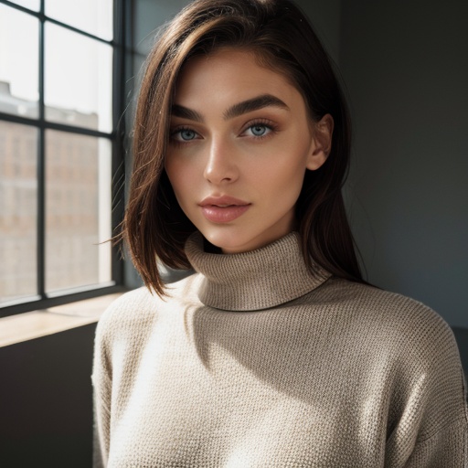 <lora:emjayrinaudo_sd15_512_128_64_v1:1> 1girl solo looking at viewer wearing a turtleneck sweater epiCRealism