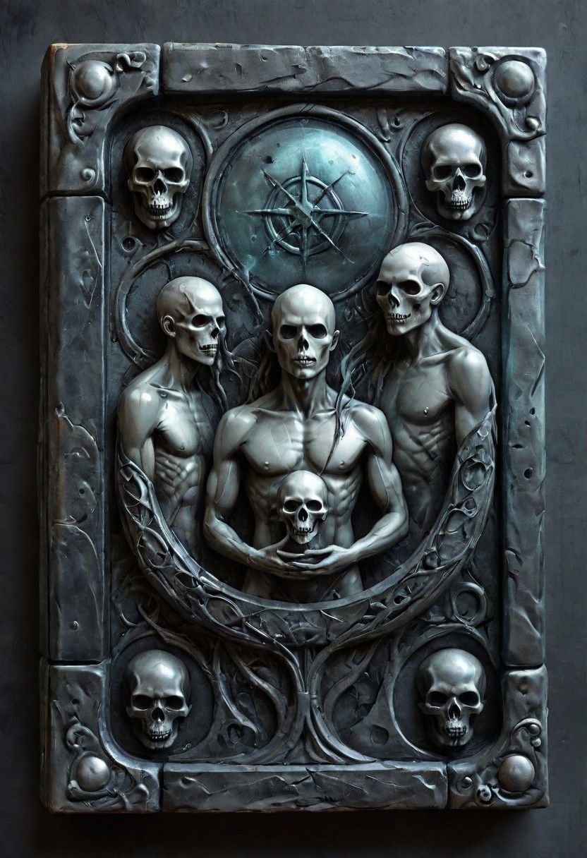 old book style ink illustration, Capture the ethereal essence of 'The Great Book of Spirits' as its cover, adorned with intertwined spirits and demons, creates the word 'ghosts' in a mystical engraving.
