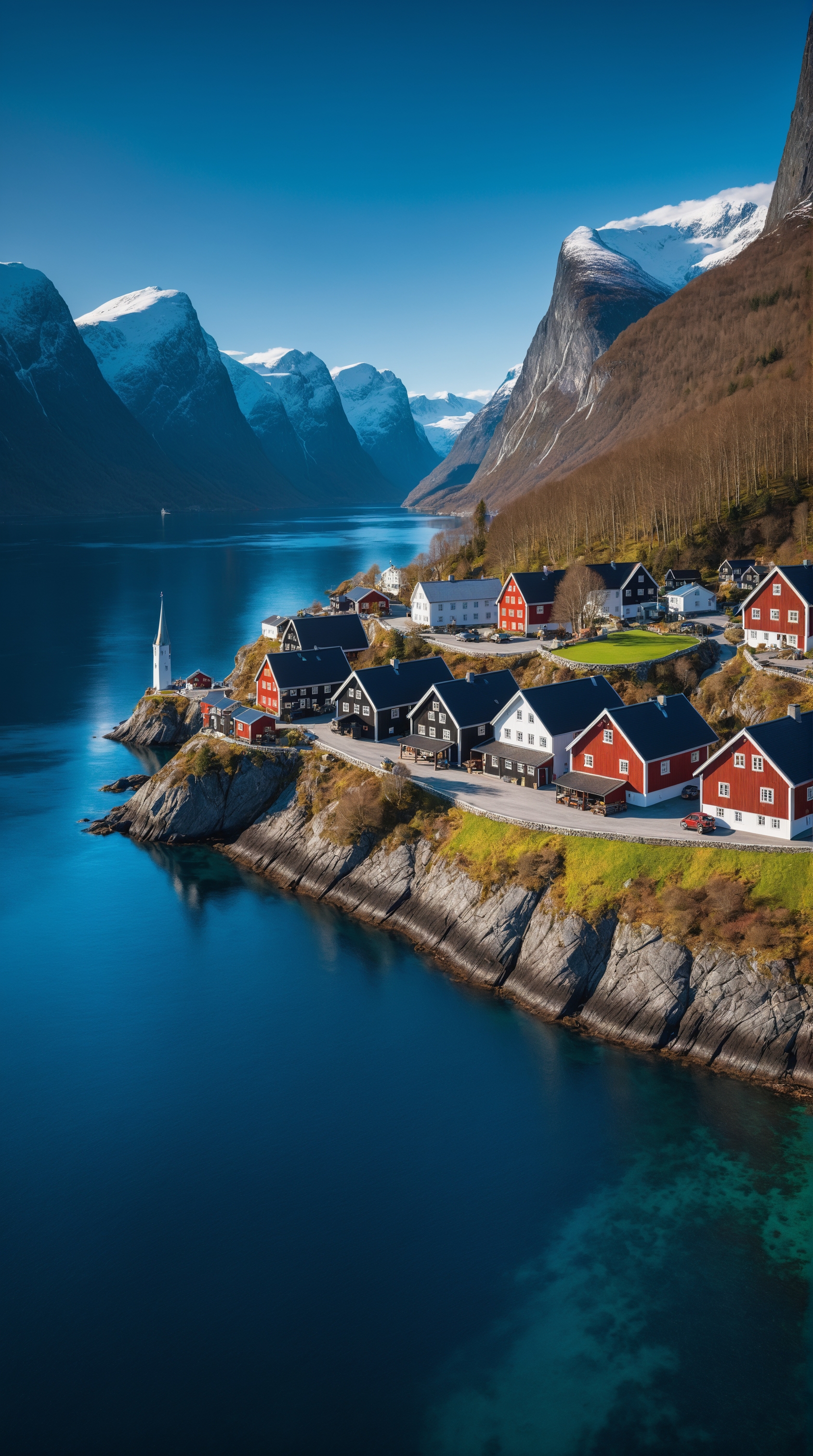 cinematic photo long shot scenic professional drone photograph of Norwegian Fjords, Norway in the Winter, awe inspiring beauty, breathtaking spectacular cliffs, trees and flowers, still fjord waters , landscape photography, litle village at the bank, frozen water, photorealism , extremely detailed ,((ultrasharp)),((masterpiece)),((best quality)),((ultradetailed)),((intricated details)), extremaly detailed background, ultra realistic,32k,RAW photo, 8k ,dslr,soft lighting,high quality,film grain, beautiful and aesthetic,extremely detailed, natural shadows, <lora:detail_slider_v4:0.6>, perfect viewpoint, highly detailed, wide-angle lens, hyper realistic, with dramatic sky, polarizing filter, natural lighting, vivid colors, everything in sharp focus, HDR, UHD, 64K . 35mm photograph, film, bokeh, professional, 4k, highly detailed, (high quality:1.4), (best quality:1.4), (masterpiece:1.4), , official art, official wallpaper, surreal, , detailed landscape:1.1, magic in the air:1.1, stardust:1.1, night sky, whimsical atmosphere:1.1, dreamlike world:1.1, moonlight:1.1, powerful energy:1.1, peaceful:1.1, vibrant colors, (detailed:1.05), (extremely detailed:1.1), sharp focus, (intricate:1.1), cinematic lighting, (extremely intricate:1.1), (epic scenery:1.1), vibrant colors, (beautiful scenery:1.1), (detailed scenery:1.1), (intricate scenery:1.1), (wonderful scenery:1.1), (sharp focus,absurdres,high quality,masterpiece,highres,best quality:1.5)