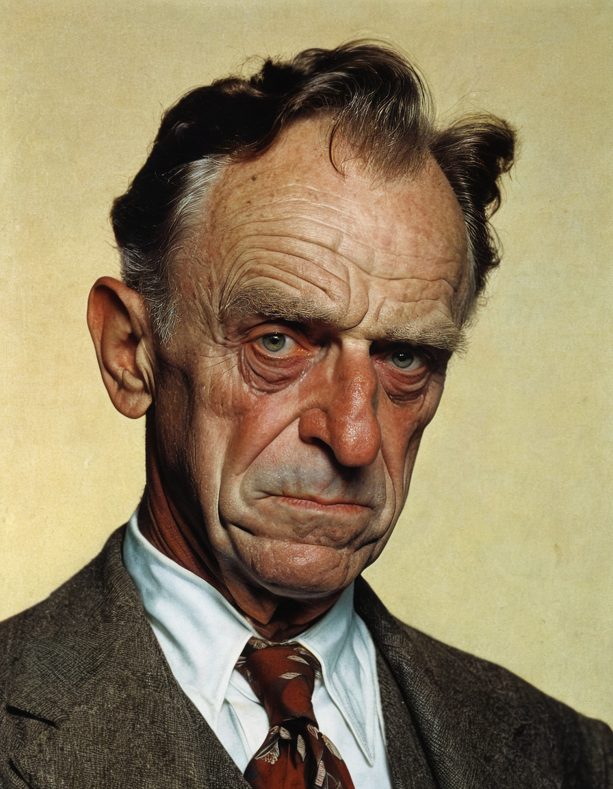 upper body shot of eerie grumpy Willy Loman (from Death of a Salesman) (by Norman Rockwell, (Frank Frazetta:1.15):1.05), (Alphonse Mucha:0.15),{creepy|gloomy|natural|bright|cheerful|idyllic}, {harsh|diffuse} {direct|indirect} lit from {above|right|left|below|behind|front}, steempunk