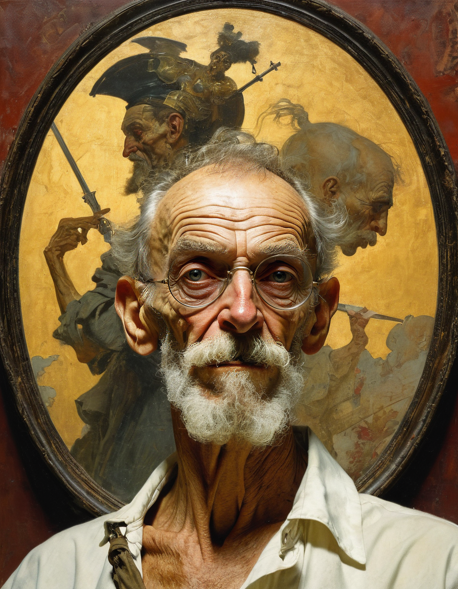 portrait of crazy don quixote (by Norman Rockwell, (Frank Frazetta:1.15):1.05), (Alphonse Mucha:0.15),{creepy|gloomy|natural|bright|cheerful|idyllic}, {harsh|diffuse} {direct|indirect} lit from {above|right|left|below|behind|front}, steempunk