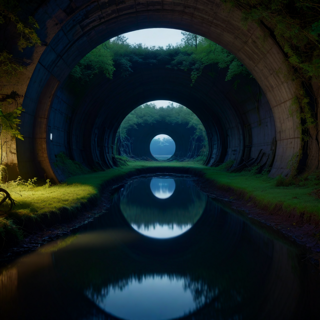 masterwork, Futurepunk, intricate details, landscape of a Morbid Grotesque (Estuary:1.3) from inside of a Nuclear missile silo, dense pond and woods, at Blue hour, photography art, (scene art by Nickolas Muray:1.2) , (Walter Langley:0.7) , Flustered, rim light, pinhole lens, Pearlescent and Neon hue, cosmic energy, sunbeam, award winning, extremely detailed CG Unity 8k wallpaper