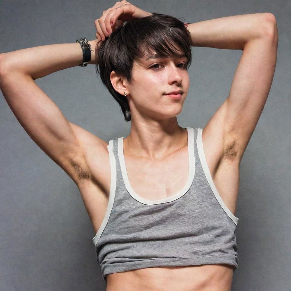 androgynous, arms_behind_head, armpits, presenting_armpits, armpit_stubble, tomboy, tank_top