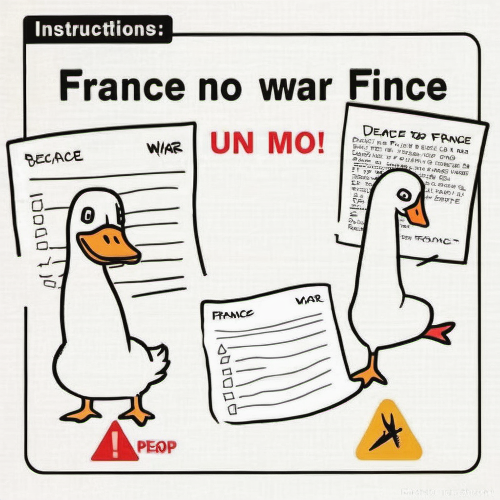 instructions, goose declare war to France, funny, cute, <lora:Do_Dont:1>