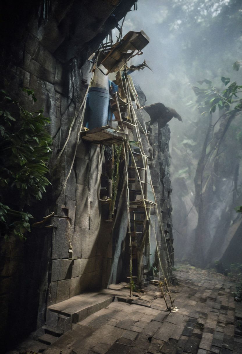 (POV view , DOF, first people view from the entrance, low angle shot:1.4), in the rainforest, mist, (Ancient civilization, Alien Prometheus movie scene, dune movie scene:1.5), (The colonial city of the future, in the mist-filled Grand Canyon, on an unknown Earth-like planet, 2 moon on sky, Spaceship flight connects colonies, waterfulls:1.3), (Machu Picchu, a mountain settlement, incredibly spectacular:1.2), (Mario Botta:1.3), (avant-garde, future, reality, science fiction, photorealistic), (modern architecture:1.2), White limestone and black granite, fountain, waterfall, landmark, square, path, narrow street, (Large Files, Ultra Realistic, 8K, 16k, FHD, HD, VFX, Perfect, Photography, composition, Architecture Sales Photography, Architecture Competition, Ultra High Resolution, Cinematography, High Resolution Image:1.1), (dramatic lighting, direct sunlight, ray tracing, clear shadow:1.2), (real landscape:1.1), (blurred background:1.0), (urban background, more_details) , extremely detailed, great lighting, extrusionbuilding, void
