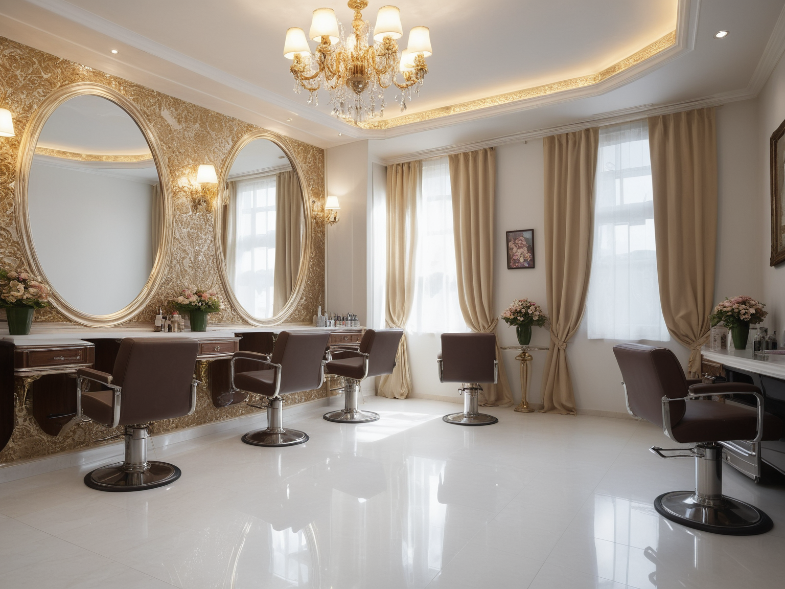 <lora:JJsHairSalon_XL:1>, ((Hair Salon)) , ((best quality)),((masterpiece)),((realistic)), indoors, mirror, reflection, chair, table, photorealistic, authentic, indoor scenery, highly detailed, stainless, gold, ceiling light, white wall, cup,curtains, glass,,bouquet,tiles,lamp,tile floor,vase