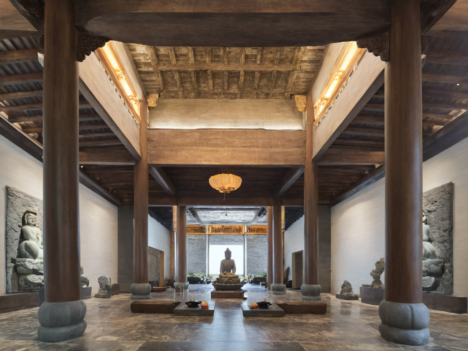 <lora:JJsChineseBuddhistTemple_XL:1>, (Chinese Buddhist Temple), masterpiece, best quality, scenery,indoors, real world location, door, window, roof, floor,dawn, day, statue on table, subject, soft lighting, high quality, column,beam,