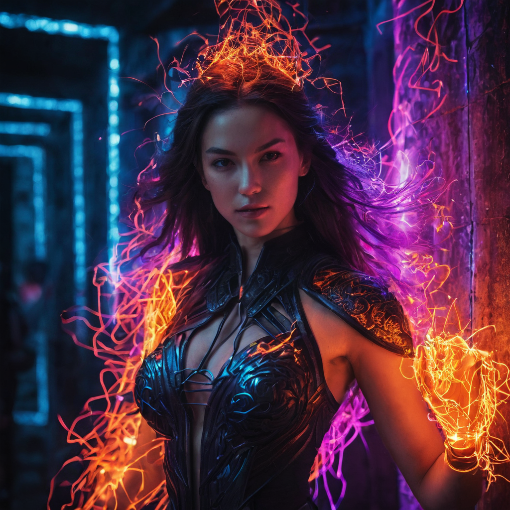 Dungeons and dragons, lawful good, beautiful perfect Female god. trapped in a magical prison in deep and evil dungeon.((((aura, flaming, electricity, sparks, magic, energy, void, neon, power, glowing, arcing:1.9)))). perfect eyes, perfect faces, correct proportions, perfect features, perfect anatomy, hyper detailed, extremely intricate, (RAW photo:1.9), HDR 1600, F/22 aperture, masterpiece, trending on artstation, ray tracing, best quality, ultra high quality, 8k resolution, centered, clear, depth of field, vibrant, winner, colorful, radiant, beautiful, perfect, winner