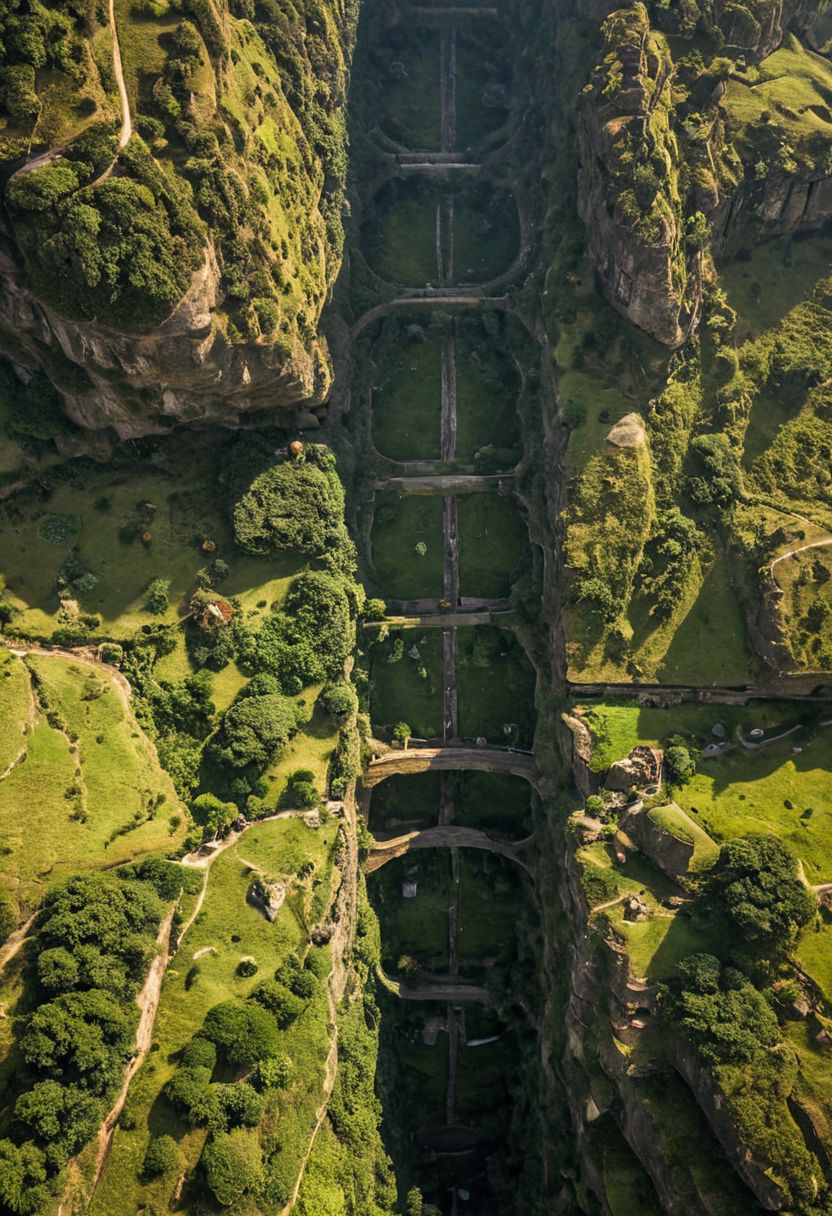 (Ancient megalithic civilization, Azka Lines, on Easter Island:1.5), (The colonial city of the future, in the mist-filled Grand Canyon, on an unknown Earth-like planet, 2 moon on sky, Spaceship flight connects colonies, waterfulls:1.3), (Machu Picchu, a mountain settlement, incredibly spectacular:1.2), (Mario Botta:1.3), (avant-garde, future, reality, science fiction, photorealistic), (modern architecture:1.2), White limestone with black granite, fountain, waterfall, landmark, square, path, narrow street, (Large Files, Ultra Realistic, 8K, 16k, FHD, HD, VFX, Perfect, Photography, composition, Architecture Sales Photography, Architecture Competition, Ultra High Resolution, Cinematography, High Resolution Image:1.1), (dramatic lighting, direct sunlight, ray tracing, clear shadow:1.2), (real landscape:1.1), (blurred background:1.0), (urban background, more_details) , great lighting, clear, extremely detailed, tunnel