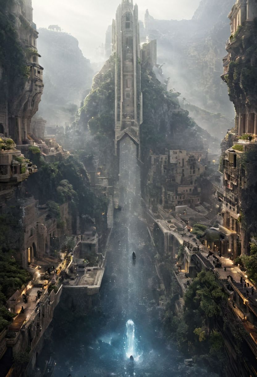 POV view , DOF, (Ancient civilization, Alien Prometheus movie scene, dune movie scene:1.5), (The colonial city of the future, in the mist-filled Grand Canyon, on an unknown Earth-like planet, 2 moon on sky, Spaceship flight connects colonies, waterfulls:1.3), (Machu Picchu, a mountain settlement, incredibly spectacular:1.2), (Mario Botta:1.3), (avant-garde, future, reality, science fiction, photorealistic), (modern architecture:1.2), White limestone with black granite, fountain, waterfall, landmark, square, path, narrow street, (Large Files, Ultra Realistic, 8K, 16k, FHD, HD, VFX, Perfect, Photography, composition, Architecture Sales Photography, Architecture Competition, Ultra High Resolution, Cinematography, High Resolution Image:1.1), (dramatic lighting, direct sunlight, ray tracing, clear shadow:1.2), (real landscape:1.1), (blurred background:1.0), (urban background, more_details) , great lighting, clear, hillscastel, <stardeaf-cold-arc>, xtower, industrialbuilding