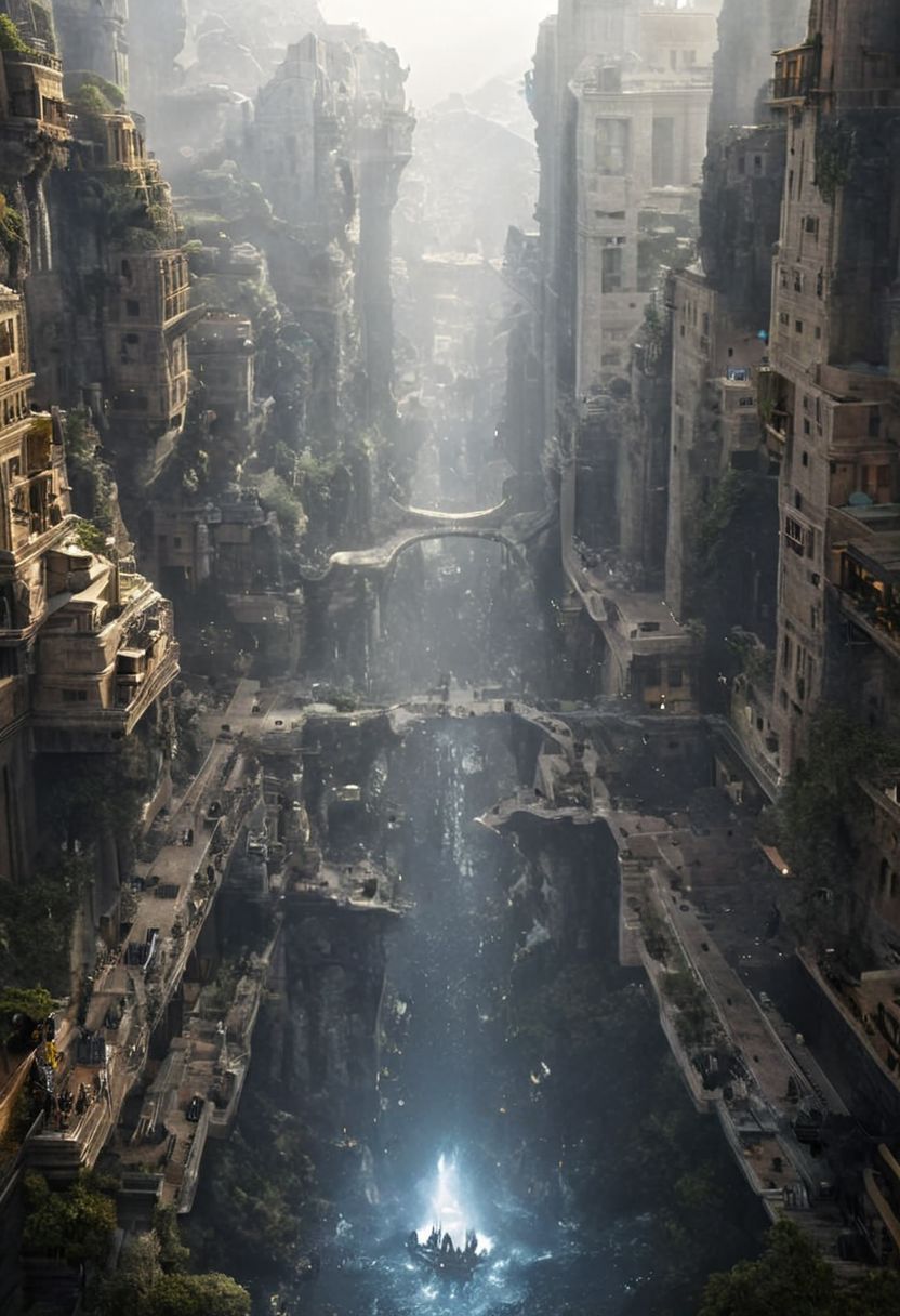 POV view , DOF, (Ancient civilization, Alien Prometheus movie scene, dune movie scene:1.5), (The colonial city of the future, in the mist-filled Grand Canyon, on an unknown Earth-like planet, 2 moon on sky, Spaceship flight connects colonies, waterfulls:1.3), (Machu Picchu, a mountain settlement, incredibly spectacular:1.2), (Mario Botta:1.3), (avant-garde, future, reality, science fiction, photorealistic), (modern architecture:1.2), White limestone with black granite, fountain, waterfall, landmark, square, path, narrow street, (Large Files, Ultra Realistic, 8K, 16k, FHD, HD, VFX, Perfect, Photography, composition, Architecture Sales Photography, Architecture Competition, Ultra High Resolution, Cinematography, High Resolution Image:1.1), (dramatic lighting, direct sunlight, ray tracing, clear shadow:1.2), (real landscape:1.1), (blurred background:1.0), (urban background, more_details) , great lighting, clear, hillscastel, <stardeaf-cold-arc>, xtower, industrialbuilding