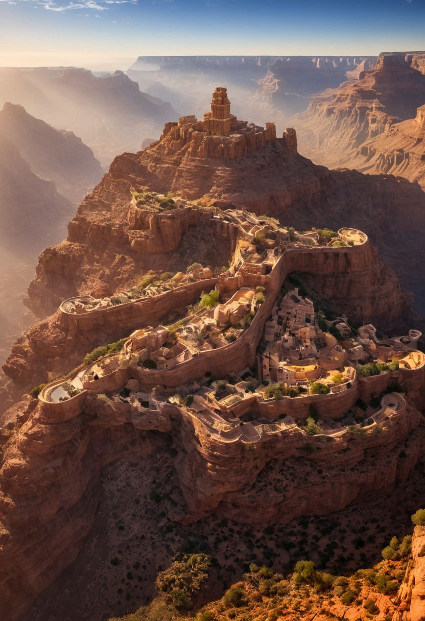 (The colonial city of the future, in the mist-filled Grand Canyon, on an unknown Earth-like planet, 2 moon on sky, Spaceship flight connects colonies:1.3), (Richard Meier:1.2), (Mario Botta:1.3), (avant-garde, future, reality, science fiction, photorealistic), (modern architecture:1.2), (Large Files, Ultra Realistic, 8K, 16k, FHD, HD, VFX, Perfect, Photography, composition, Architecture Sales Photography, Architecture Competition, Ultra High Resolution, Cinematography, High Resolution Image:1.1), (dramatic lighting, direct sunlight, ray tracing, clear shadow:1.2), (real landscape:1.1), (blurred background:1.0), (urban background, more_details) , ac_neg1, great lighting, clear, hillscastel, stacked