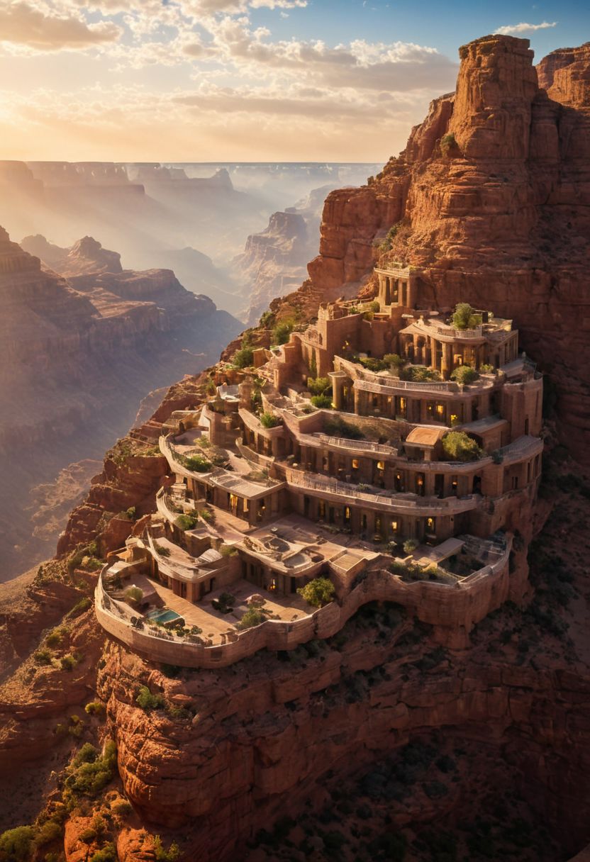 (The colonial city of the future, in the mist-filled Grand Canyon, on an unknown Earth-like planet, 2 moon on sky, Spaceship flight connects colonies:1.3), (Richard Meier:1.2), (Mario Botta:1.3), (avant-garde, future, reality, science fiction, photorealistic), (modern architecture:1.2), (Large Files, Ultra Realistic, 8K, 16k, FHD, HD, VFX, Perfect, Photography, composition, Architecture Sales Photography, Architecture Competition, Ultra High Resolution, Cinematography, High Resolution Image:1.1), (dramatic lighting, direct sunlight, ray tracing, clear shadow:1.2), (real landscape:1.1), (blurred background:1.0), (urban background, more_details) , ac_neg1, great lighting, clear, hillscastel, stacked