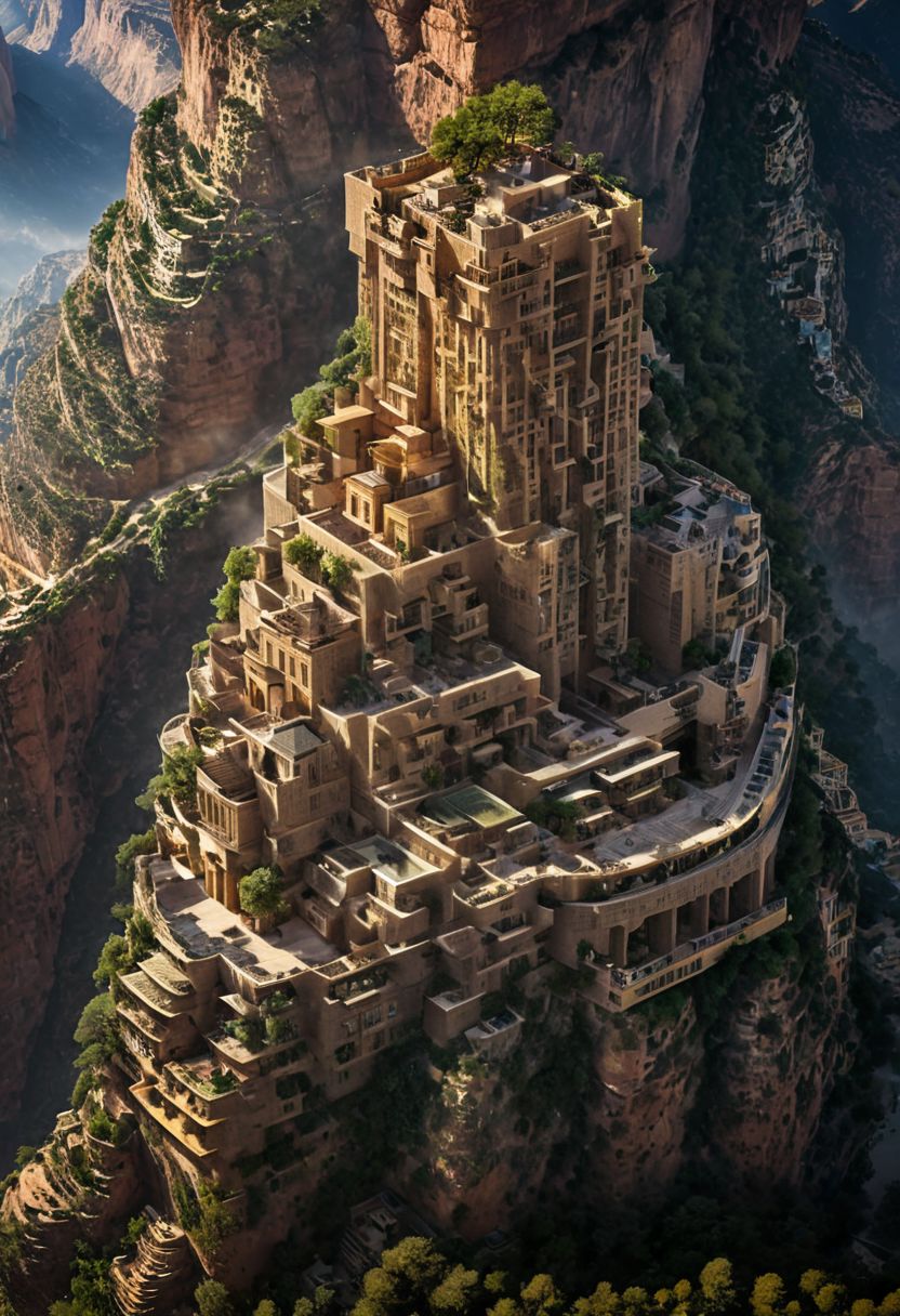 (The colonial city of the future, in the mist-filled Grand Canyon, on an unknown Earth-like planet, 2 moon on sky, Spaceship flight connects colonies, waterfulls:1.3), (Machu Picchu, a mountain settlement, incredibly spectacular:1.2), (Mario Botta:1.3), (avant-garde, future, reality, science fiction, photorealistic), (modern architecture:1.2), (Large Files, Ultra Realistic, 8K, 16k, FHD, HD, VFX, Perfect, Photography, composition, Architecture Sales Photography, Architecture Competition, Ultra High Resolution, Cinematography, High Resolution Image:1.1), (dramatic lighting, direct sunlight, ray tracing, clear shadow:1.2), (real landscape:1.1), (blurred background:1.0), (urban background, more_details) , ac_neg1, great lighting, clear, hillscastel, extrusionbuilding, vertical