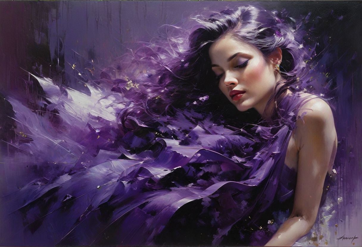 purple wolf, masterpiece, award wining, trending, , high quality, delicate, oil painting, by Jeremy Mann, Pino Daeni
