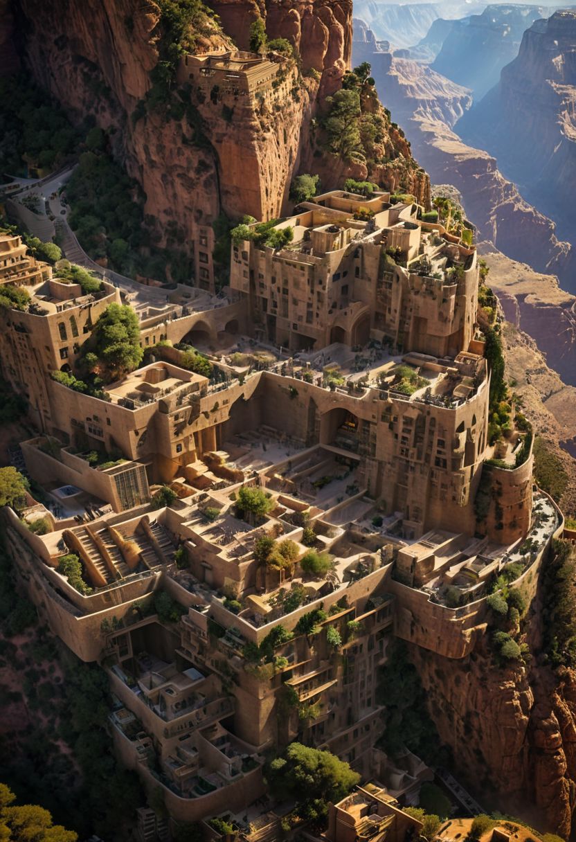 (The colonial city of the future, in the mist-filled Grand Canyon, on an unknown Earth-like planet, 2 moon on sky, Spaceship flight connects colonies, waterfulls:1.3), (Machu Picchu, a mountain settlement, incredibly spectacular:1.2), (Mario Botta:1.3), (avant-garde, future, reality, science fiction, photorealistic), (modern architecture:1.2), (Large Files, Ultra Realistic, 8K, 16k, FHD, HD, VFX, Perfect, Photography, composition, Architecture Sales Photography, Architecture Competition, Ultra High Resolution, Cinematography, High Resolution Image:1.1), (dramatic lighting, direct sunlight, ray tracing, clear shadow:1.2), (real landscape:1.1), (blurred background:1.0), (urban background, more_details) , ac_neg1, great lighting, clear, hillscastel, extrusionbuilding, vertical