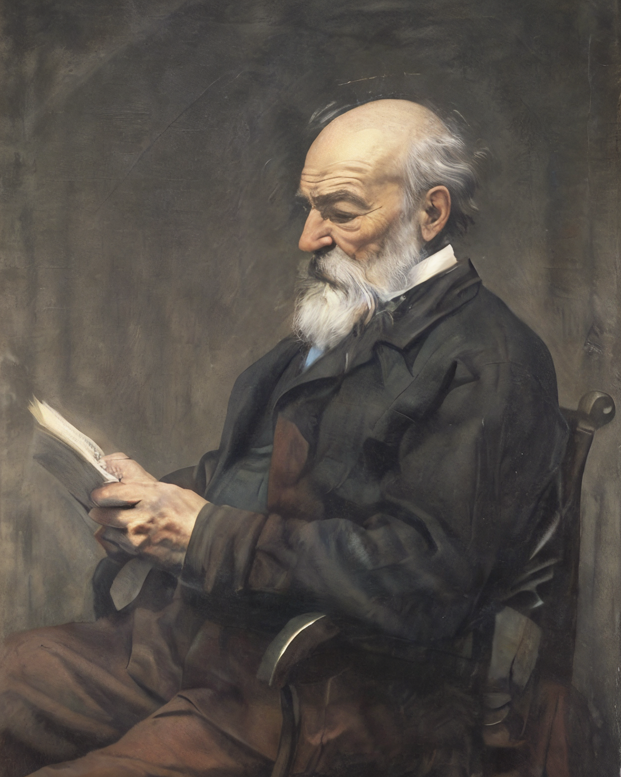 <lora:CARAVAGGIO V1:0.6>, best quality, masterpiece, realistic, (oil painting:1.1), portrait, Caravaggio, indoors, ((old man sitting)), on chair, ((solo:1.4)), dark background, reading, <lora:epi_noiseoffset2:0.8>, looking down, eyes half closed, <lora:add_detail:0.2>