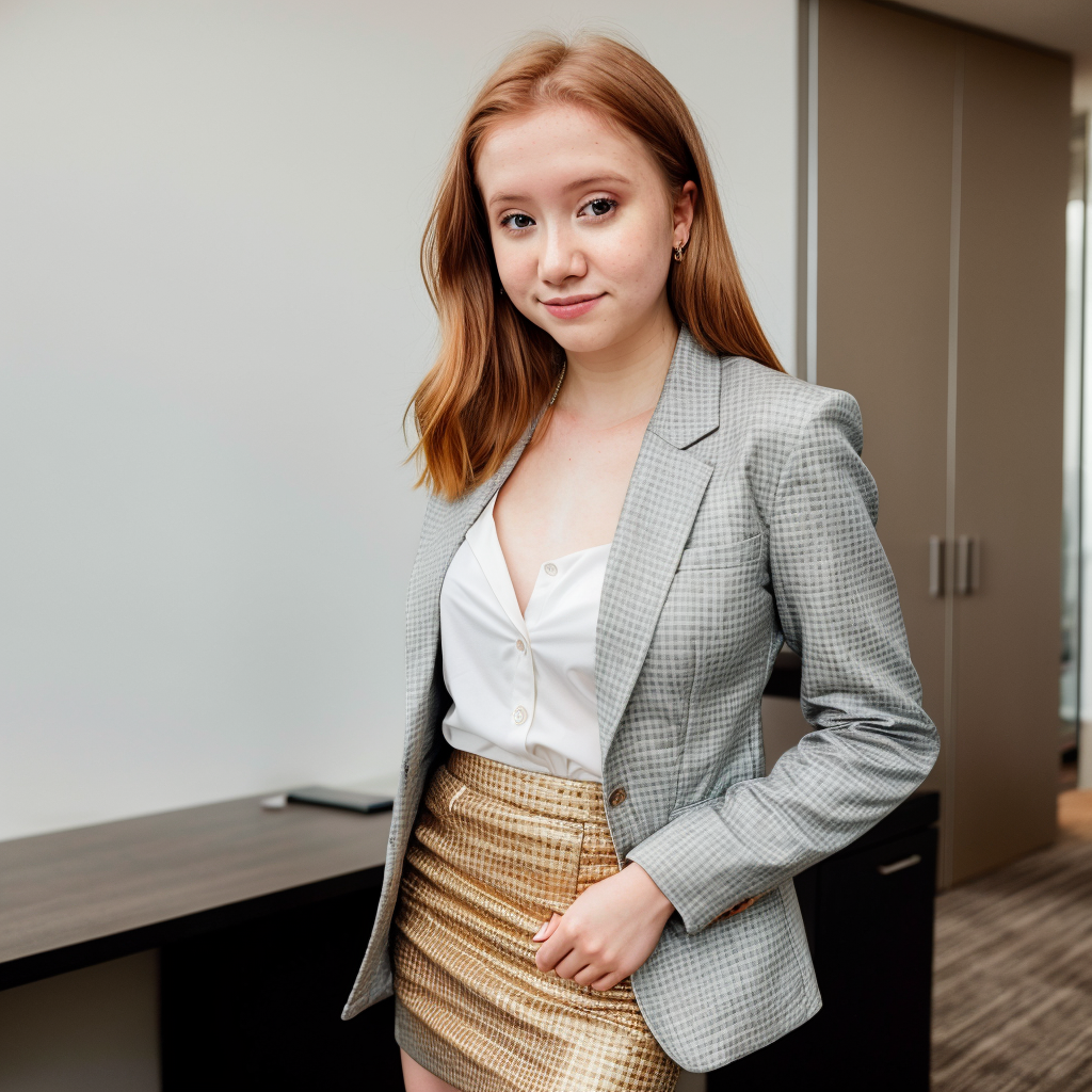 RAW photo of lifewithmak, Confidently wearing a Blazer and pencil skirt in a sleek corporate office, (high detailed skin:1.2), 8k uhd, dslr, soft lighting, high quality, film grain, Fujifilm XT3, <lyco:lifewithmag-000023:1.0>