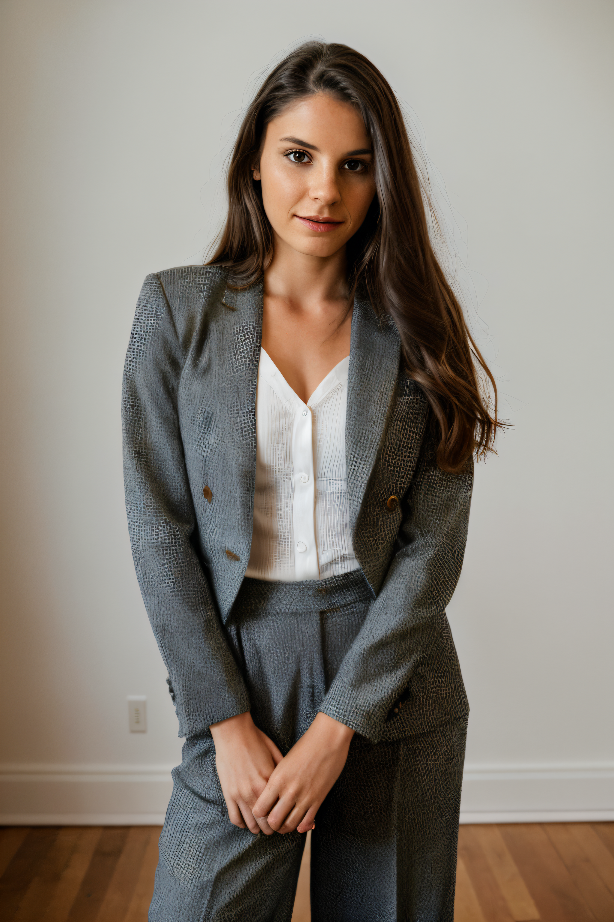RAW photo of rileemarks, Inspiring teamwork in a Blazer and wide-leg pants in a design studio, closeup portrait, (high detailed skin:1.2), 8k uhd, dslr, soft lighting, high quality, film grain, Fujifilm XT3, <lora:rileemarks-000017:1>