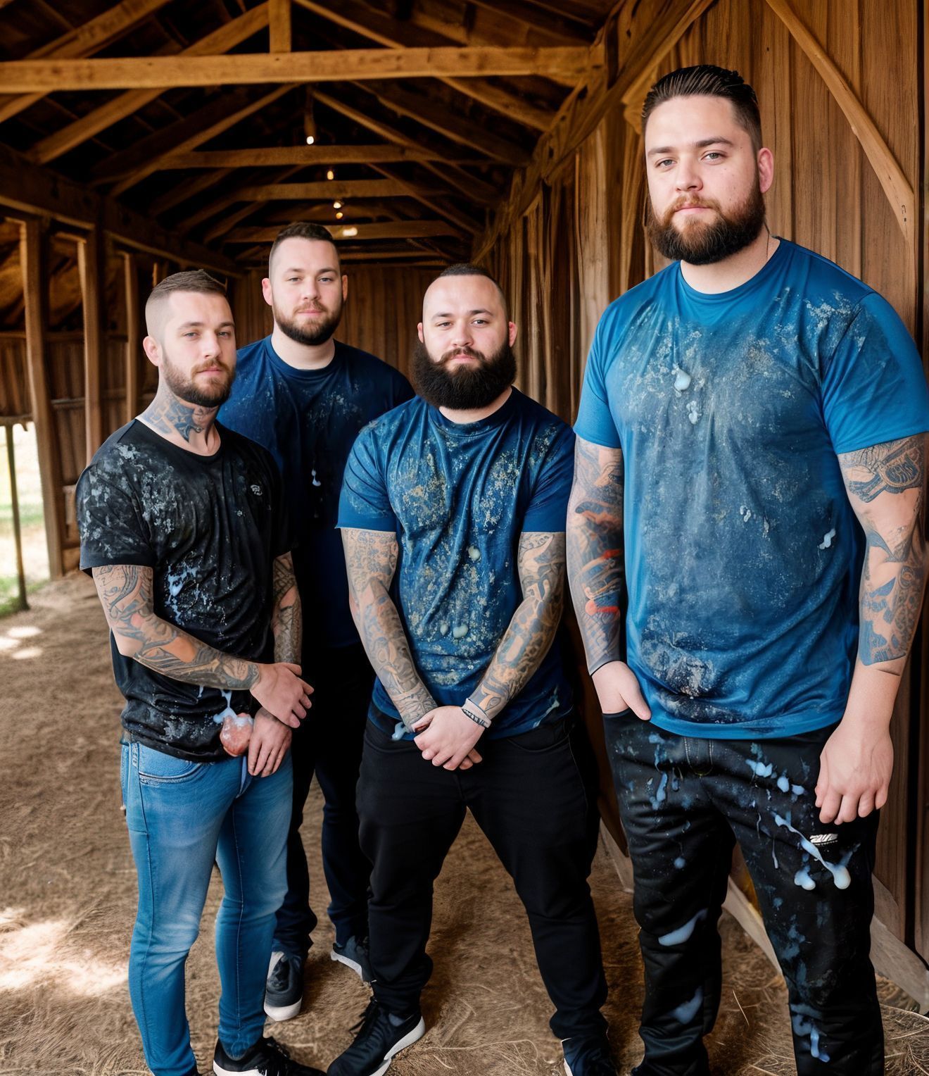 <lora:cumrag-000006_v12:1:lbw=OUTALL> (cumrag pants:1.3), a man wearing black pants, promotional image, an album cover, private press, inside of a barn background, (stained:1.2), old, gross, nasty, stinky, crusty, (yellowish:0.6) (dry stains:0.7), (wet cum stains:1.1),
