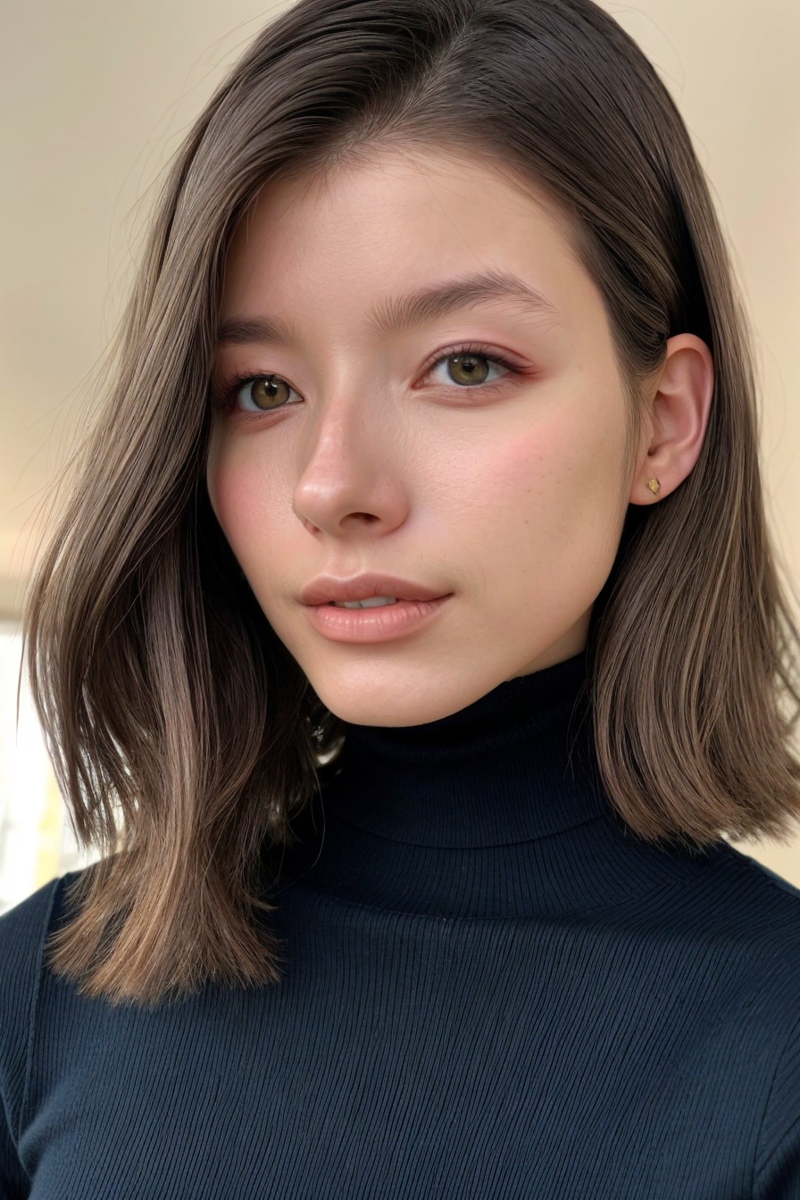 romantic style, dramatic, emotional, nature, highly detailed, half-body of photo of <lora:sd15_PatiTonin_locon_24_v1-000006:.9> PatiTonin, focus on face, wearing a turtleneck , her hair is styled as balayage lob hair,