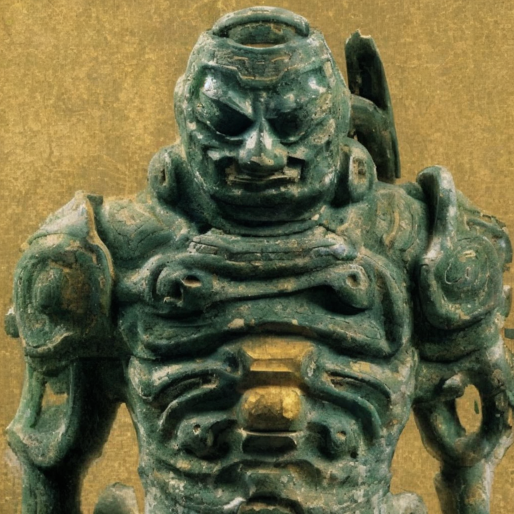 [<lora:sanxingdui-000005:1:lbw=ALL> , sanxingdui:robot:0.8], simple background, masterpiece, best quality, green