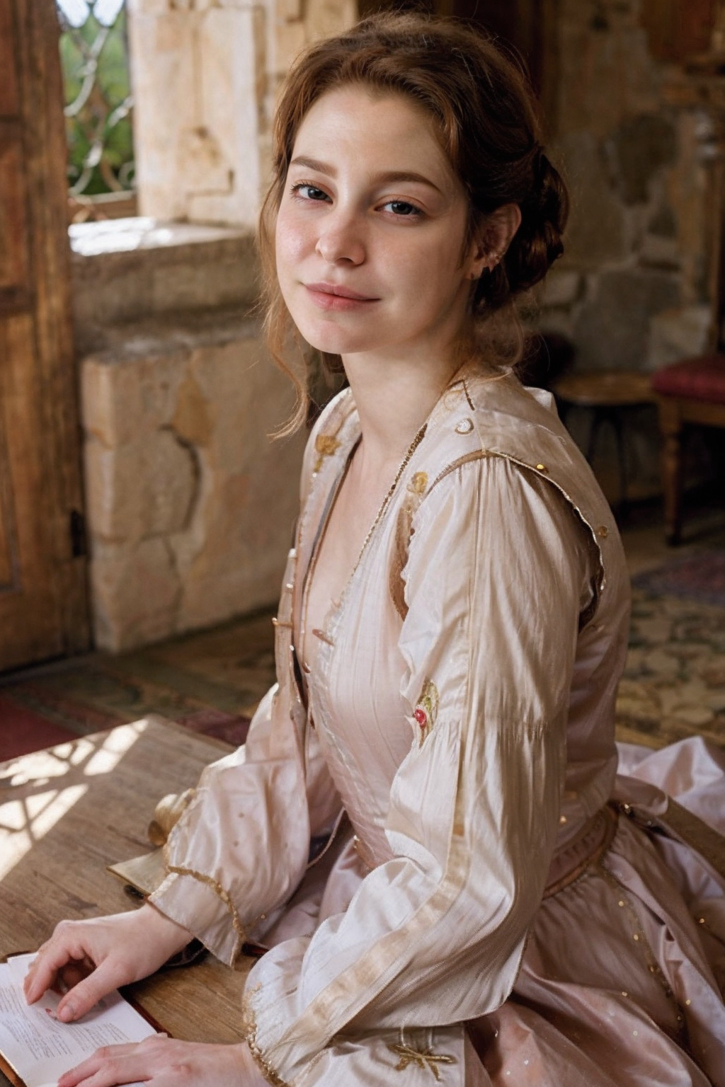 esmebianco,a woman wearing renaissance dress in dubrovnik castle, (soft diffused lighting:0.5) <lora:esmebianco:0.9>