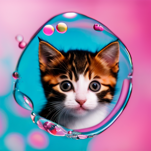 RAW photo, portrait of a cute kitten is inside bubbl3 <lora:o1l-000040:1>