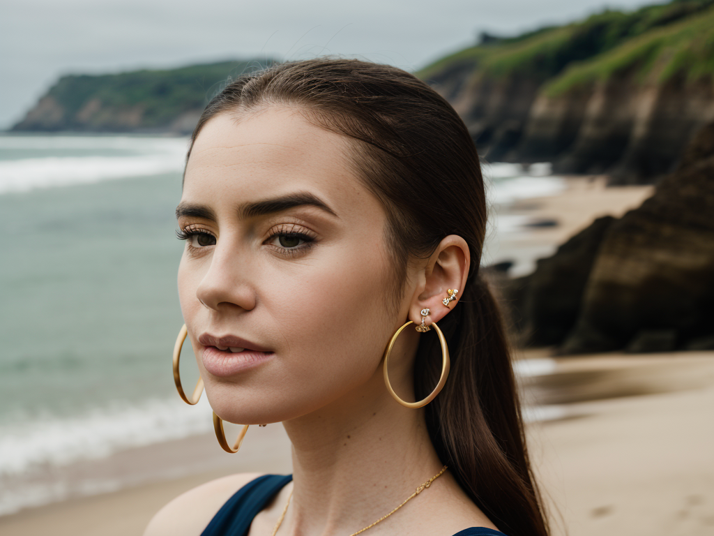 <lora:l1lyc0:1>, Realistic photo of a beautiful l1lyc0 woman, solo, brown hair, brown eyes, jewelry, sitting, earrings, outdoors, parted lips, day, bracelet, lips, beach, hoop earrings, realistic, soft lighting, professional Photography, Photorealistic, detailed, RAW, analog, sharp focus, 8k, HD, DSLR, high quality, Fujifilm XT3, film grain, award winning, masterpiece