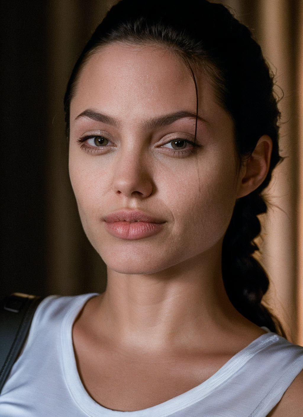 RAW photo, skswoman, (high detailed skin:1.2), 8k uhd, dslr, soft lighting, high quality, film grain, Fujifilm XT3, <lyco:Lara Croft Jolie:1.1>