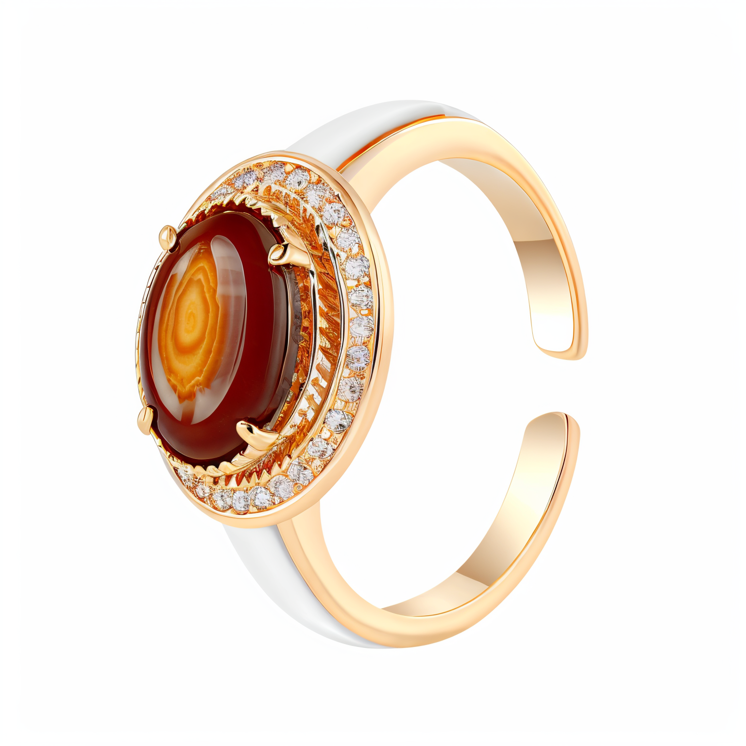 ajd, ring, gold ring, Oval-shaped Ring,Red Agate ,white background, simple background,, no humans, <lora:ringv1:1>