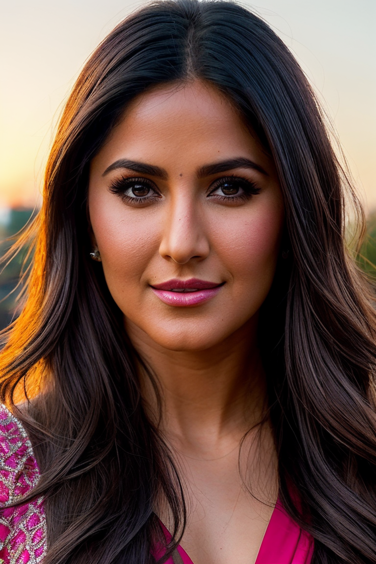 beautiful woman (k4trik4if-125:.99), (closeup portrait:1.2), sexy waist, realistic, (detailed:1.15),(film grain, skin details, 4k:1), smile, Dappled Light, analog style (look at the viewer), (skin texture), (film grain), (hyper-realistic texture skin:1.3), cinematic light, sidelighting, ultra high res, best shadow, RAW, beautiful hair, wearing a pink sari, winter city park, professional model photoshoot, hdr, sunset, (bindi)