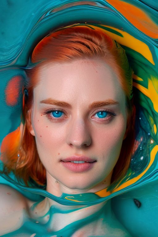 full color photo of skswoman lying in water, closeup, <lora:Deborah Ann WollV2:1> <lora:Style-PsychedelicFluids-lawine:0.7>