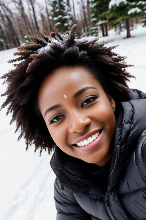 african women having fun taking selfies in the snow, beautiful, happy, excited, canon m50, detailed skin, realistic skin, (award winning:1.2),(photoreal),(uhd),(8k), snow in her hair, snow on her body, natural face