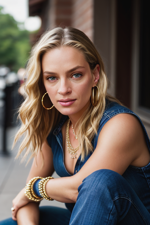<lora:um4thurm4n:0.9>, a Realistic photo of um4thurm4n woman, long hair, breasts, blue eyes, blonde hair, gloves, cleavage, jewelry, medium breasts, sitting, earrings, barefoot, pants, necklace, bracelet, feet, lips, denim, head rest, jeans, hoop earrings, realistic, indian style, soft lighting, professional Photography, Photorealistic, detailed eyes, RAW, analog, sharp focus, 8k, HD, DSLR, high quality, Fujifilm XT3, film grain, award winning, masterpiece