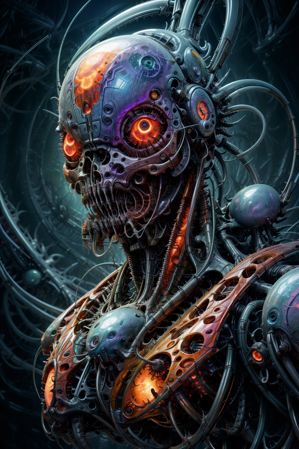 looking at viewer, (cyberfusion, robot:1.1) (alien zombie portrait:1.2), (abstract, biomechanical, gel:1.4), character portrait <lora:gelata:0.7> <lora:cyberfusion_3Drender:0.4> <lora:add_detail:0.5>, RAW candid cinema, 16mm, color graded portra 400 film, remarkable color, ultra realistic, textured skin, remarkable detailed pupils, realistic dull skin noise, visible skin detail, skin fuzz, dry skin, shot with cinematic camera