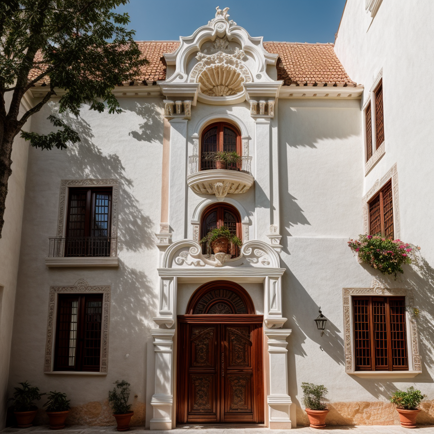 RAW photo, exterior house in baroque architectural style, (high detailed skin:1.2), 8k uhd, dslr, soft lighting, high quality, film grain, Fujifilm XT3, <lora:classical_architecture_style:0.8>