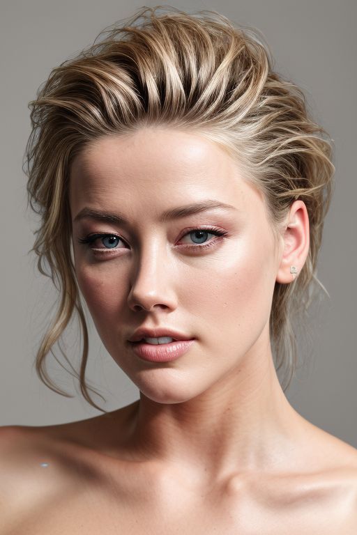 (CR-AmberHeard-SDKoh:0.9), full color portrait of woman, (oiled shiny skin:1.0), face close up, slick undercut hair, nude, naked, masterpiece, best quality, sharp focus, highres 8k uhd, ultra-detailed, rim light, deep grey background,