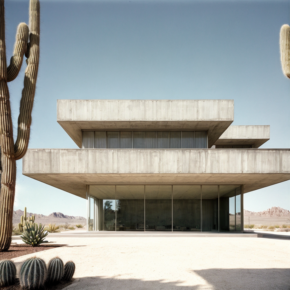 best quality, architecture, (Tadao Ando architecture), Architecture seen from the outside, soviet architecture, rectangular windows, megastructures, photorealistic, retro, (soviet:1.2), low saturation, dirt, futuristic, concrete and shiny metal, details, texture, symmetric, dynamic light, film grain, <lora: soviet architecture:0.8>, desert, mist, fog, (peoples), lake, pool, sand, (tropical plants:0.5), (tropical trees:0.3), Cactus,