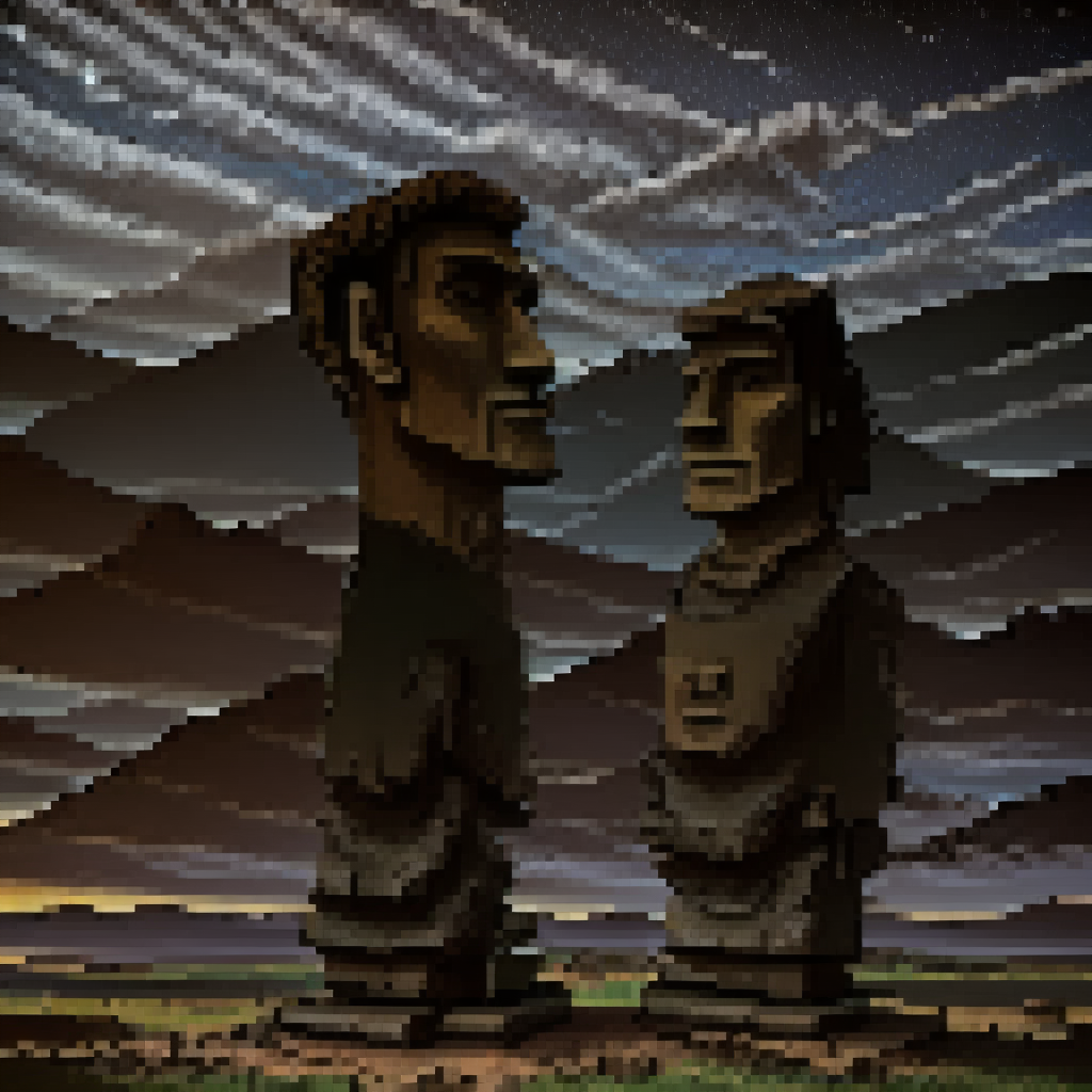 the ancient Moai statues on Easter Island against (a starry sky:1.01)