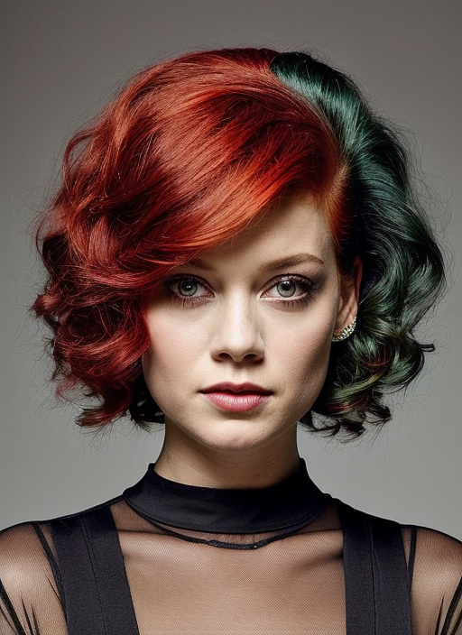 portrait of sks woman by Flora Borsi, style by Flora Borsi, bold, bright colours, rainbow Mohawk haircut, ((Flora Borsi)), <lora:locon_janelevy_v1_from_v1_64_32:1>