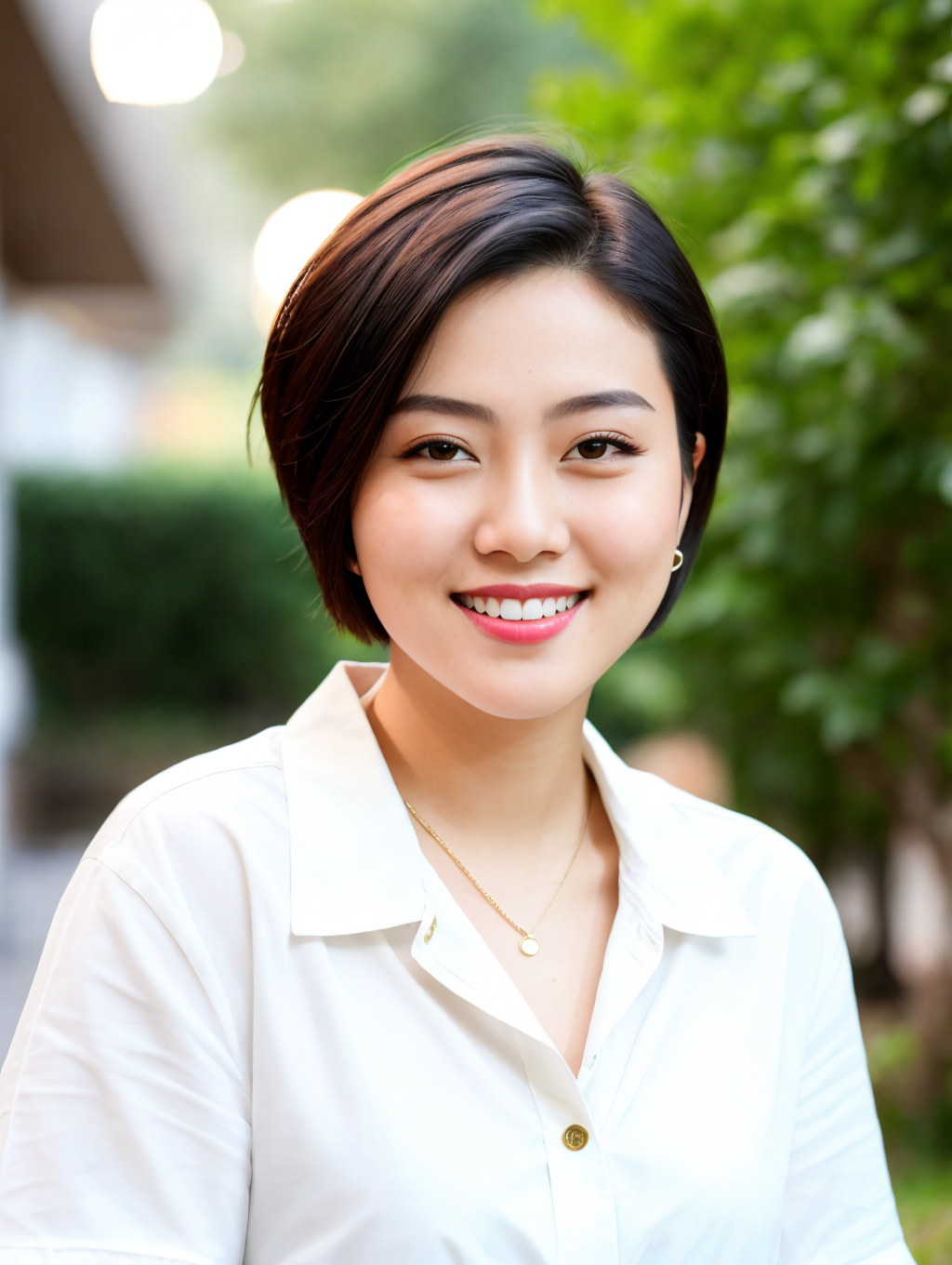 RAW photo, a beautiful trendy young woman with short hair, smiling, close up shot <lora:CC_v1.2:0.8>, (high detailed skin:1.2), 8k uhd, dslr, soft lighting, high quality