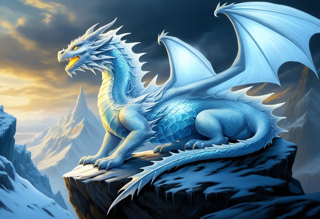 A beautiful Ice dragon with translucent scales sitting on a icy cliff, detailed eyes, steamy breath, phantasmagoria, Dynamic Angle, Dramatic Lighting, Storm-snowfall detailed winter masterpiece, digital painting,<lora:add-detail-xl:1.4>, windy epic polar, dirty fantasy, (luminous yellow eye), professional make-up, mesmerizeBREAK, (8k:1.0), (hi res:1.0), (masterpiece:1.0), (best quality:1.0), (realistic:1.2), (ph0t0x2:1.0),