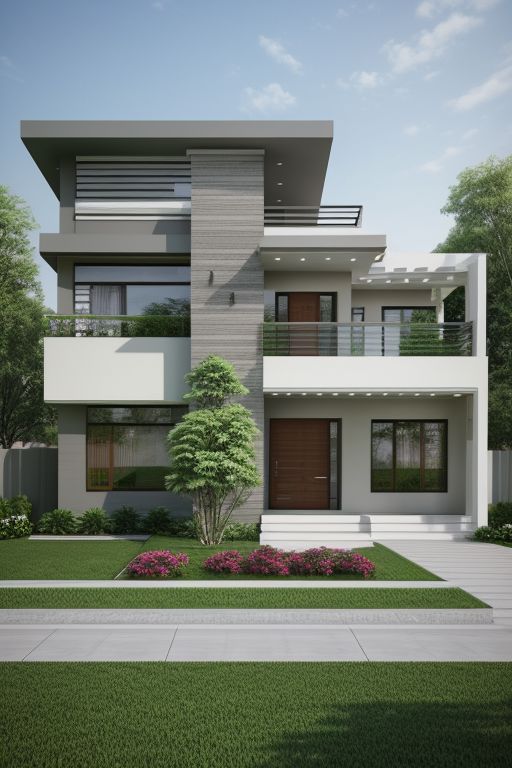 (masterpiece), (high quality), best quality, real, (realistic), super detailed, (full detail), (4k), 8k, modern house exterior design, modern architecture, clean lines, simple shapes and a strong attention focus for functionality, tree, flower garden in front of the building,