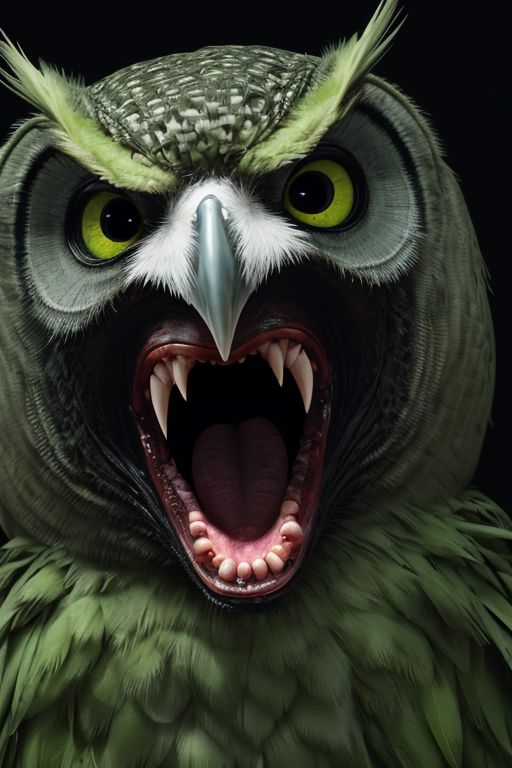 DuoLingo! Photorealistic creepy, intimidating very bright vibrant lime green giant green owl, leaning toward the viewer. Photorealistic terrifying, frightening giant very bright lime green owl which leaning to the viewer. The giant owl who is extremely vivid bright lime green and mencing is leaning towards the viewer. Duolingo is in a frightening horror scene! : Breathtaking cinematic photo, frightening and dramatic photograph, terrifying Getty Images, disturbing experimental view lit from the ground, experimental angles, in the style of a gruesome Eli Roth slasher horror film!